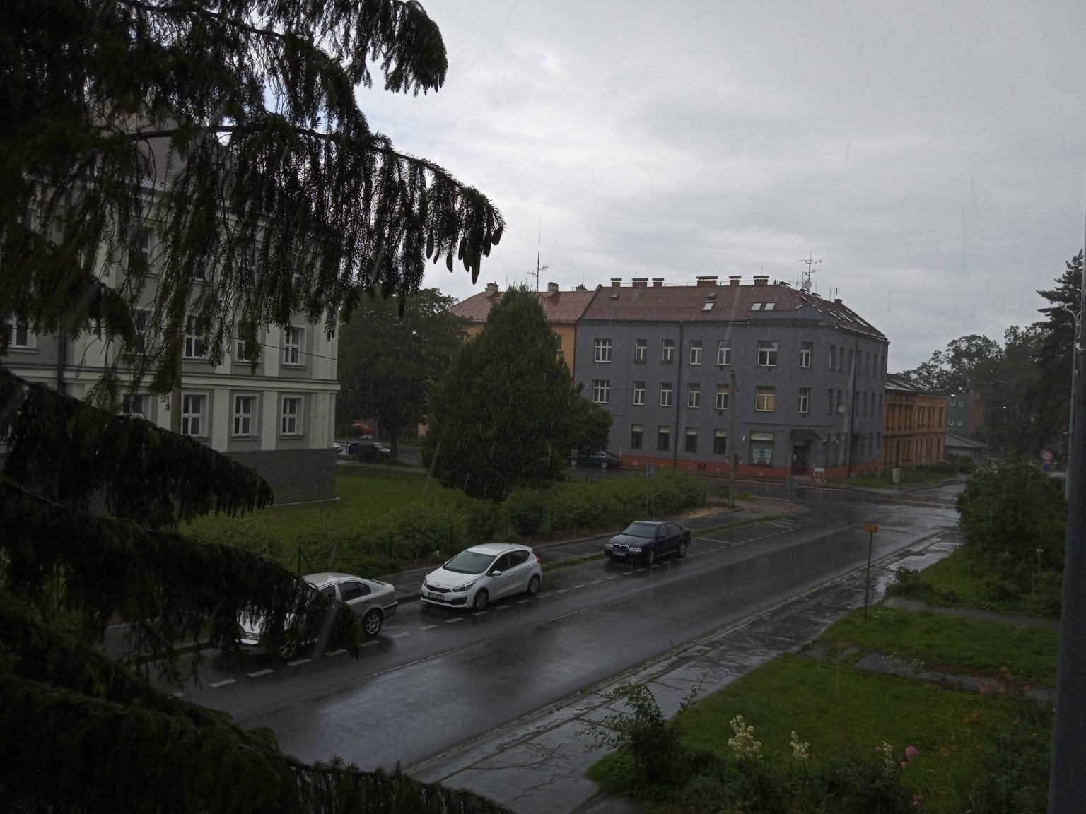 18,8°C, Oblačno až polojasno. Celkem fajně. Asi dneska budou dělat ten stožár.
