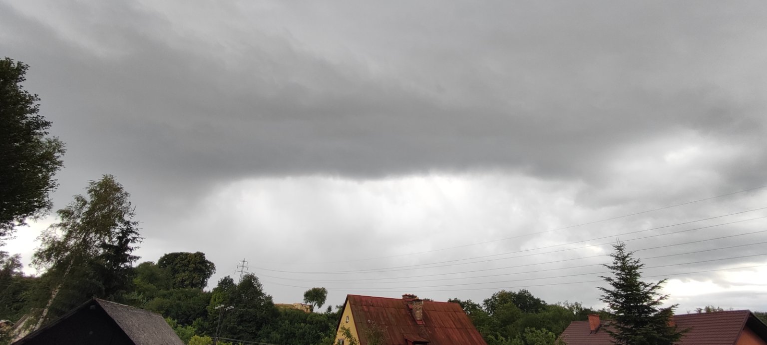 14,4°C, Zataženo až oblačno. Před chvílí lilo, v dálce to teď musí být masakr.