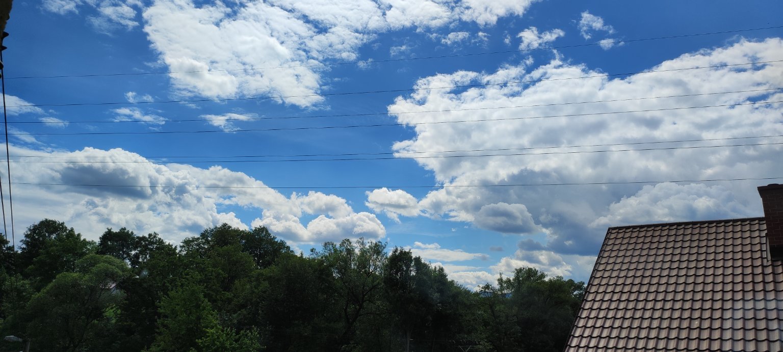 18,9°C, Zataženo až oblačno. Přeháňka v dálce.