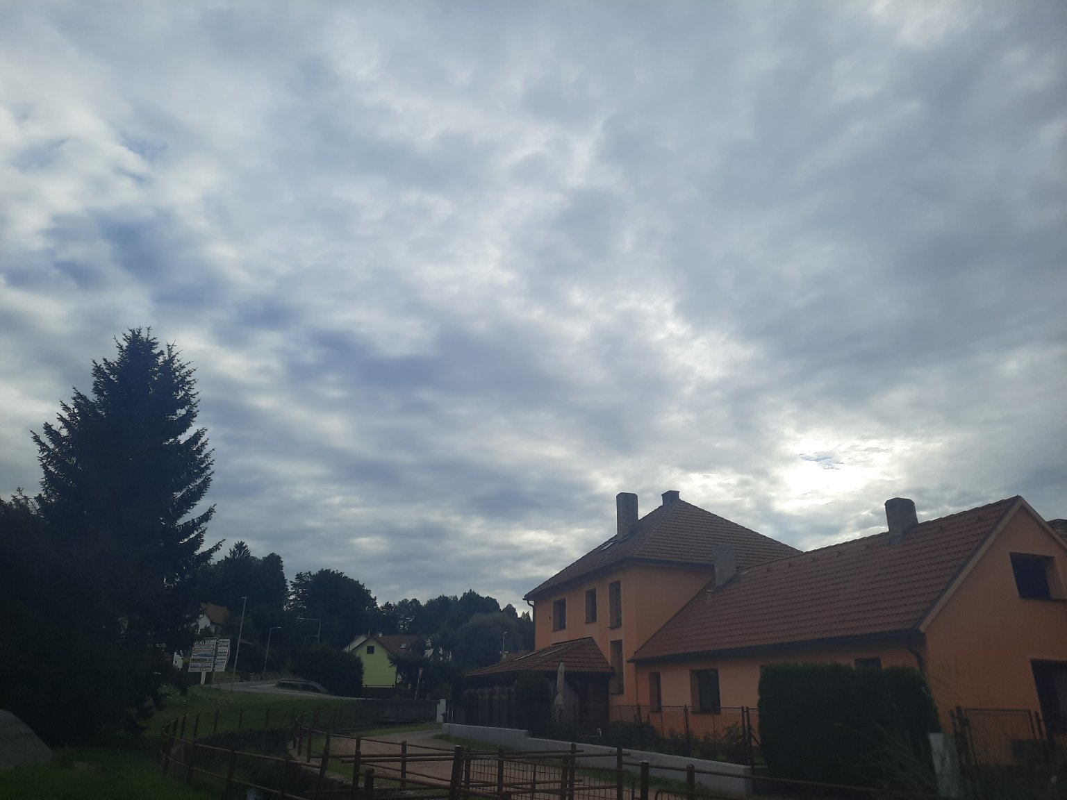 Nedaleká přeháňka na JZ obzoru, slabý Z vítr.