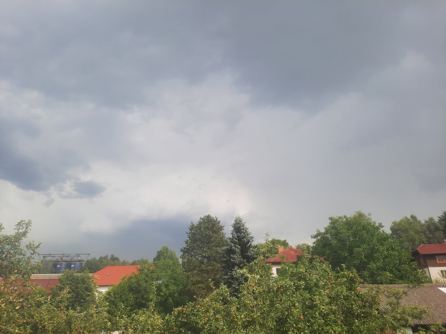 Lhota Jezero, 26°C, nízká oblačnost skoro pryč, slunce už zas vykukuje.