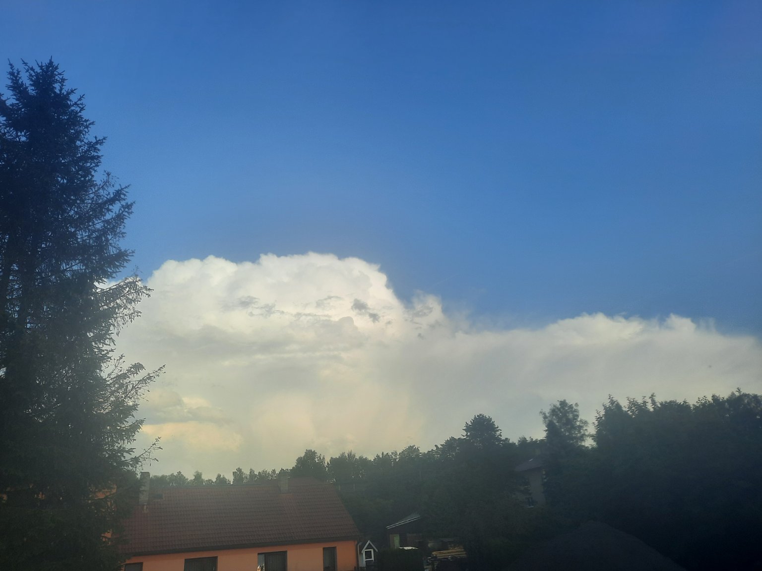 Záhy je po bouřce, slunce od západu čaruje. Příval. déšť jen 5 minut, 7 mm srážek.