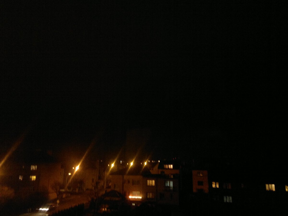 foto z 2013 12 14 v 10:38 tak bylo taky zataženo, dokonce jen +1°, proto kocour koukl z okna a když jsem šla zavírat nešel na plot jako vždy ale do tepla kuchyně - celý den jakoby padala mlha