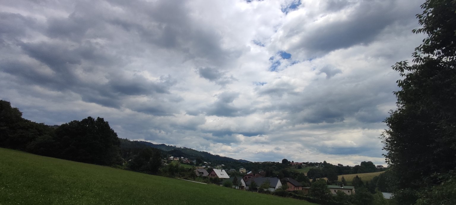 Dopoledne bylo přechodně skoro jasno a teď je zataženo a od sz se ženou přeháňky. Vítr vane čerstvý.