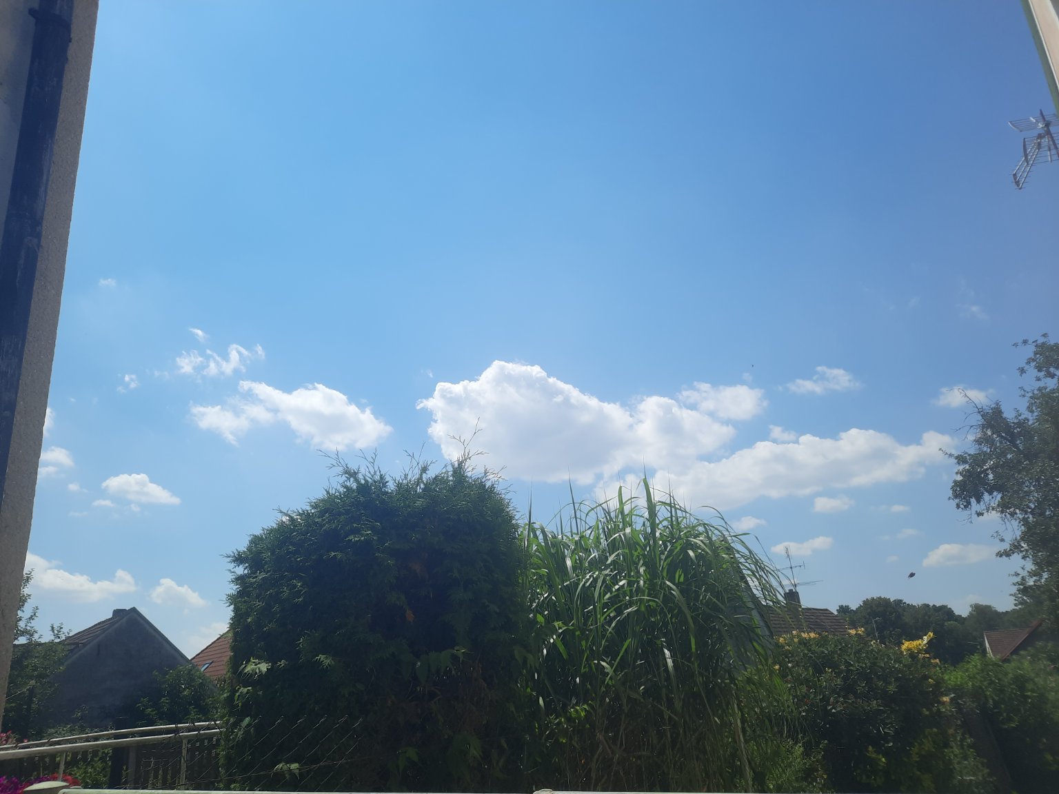 28,1°C, Oblačno až polojasno. Kvůli suchu už nám opadává listí ze stromů...