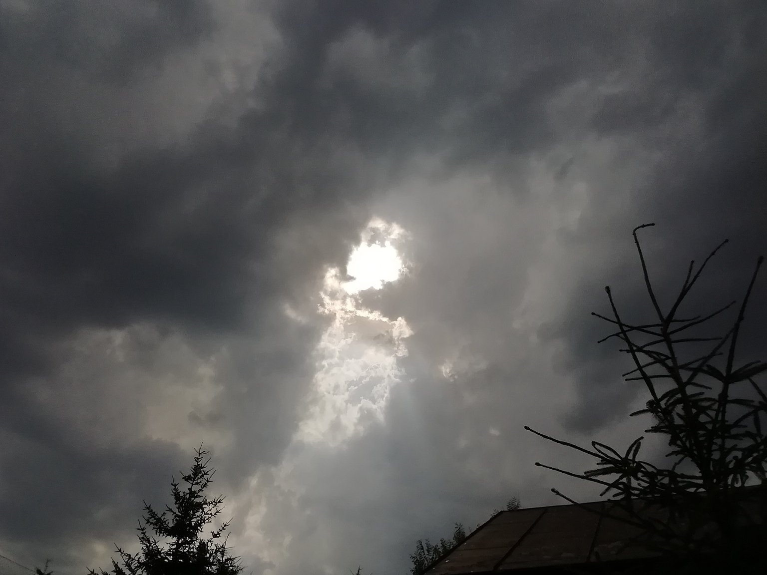 Skoro zamračené, búrka, slabunka dažďová prehánka.