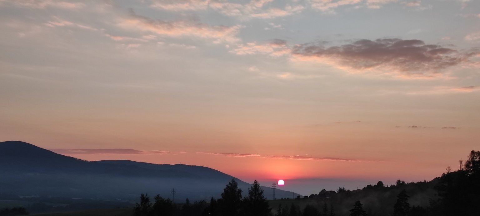 15,3°C, Oblačno. Nádherný západ slunce!!!!! Už je vidět ten kouř...