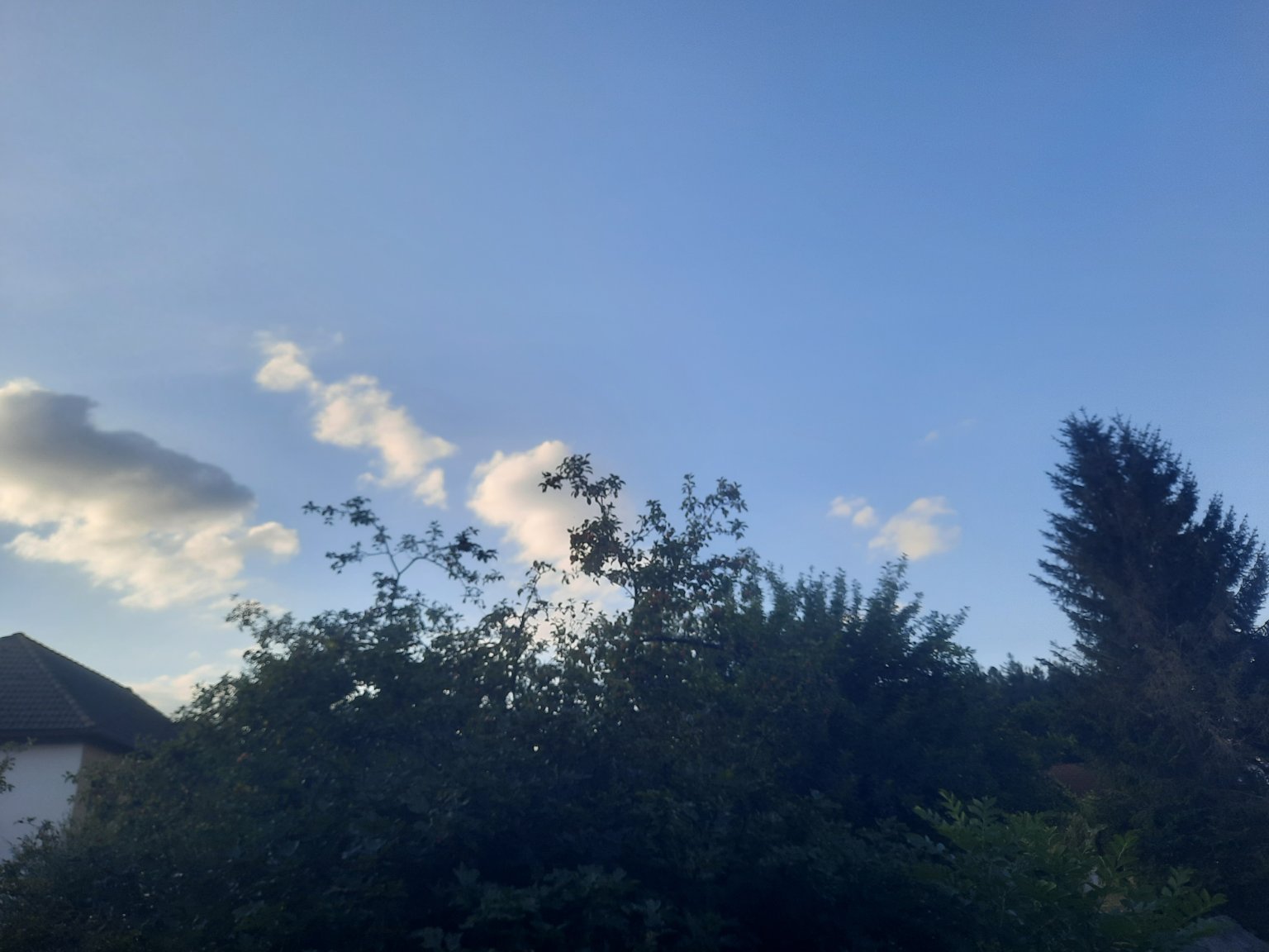 20°C, Oblačno až zataženo. Večerní slunce osvětluje Radvanov.