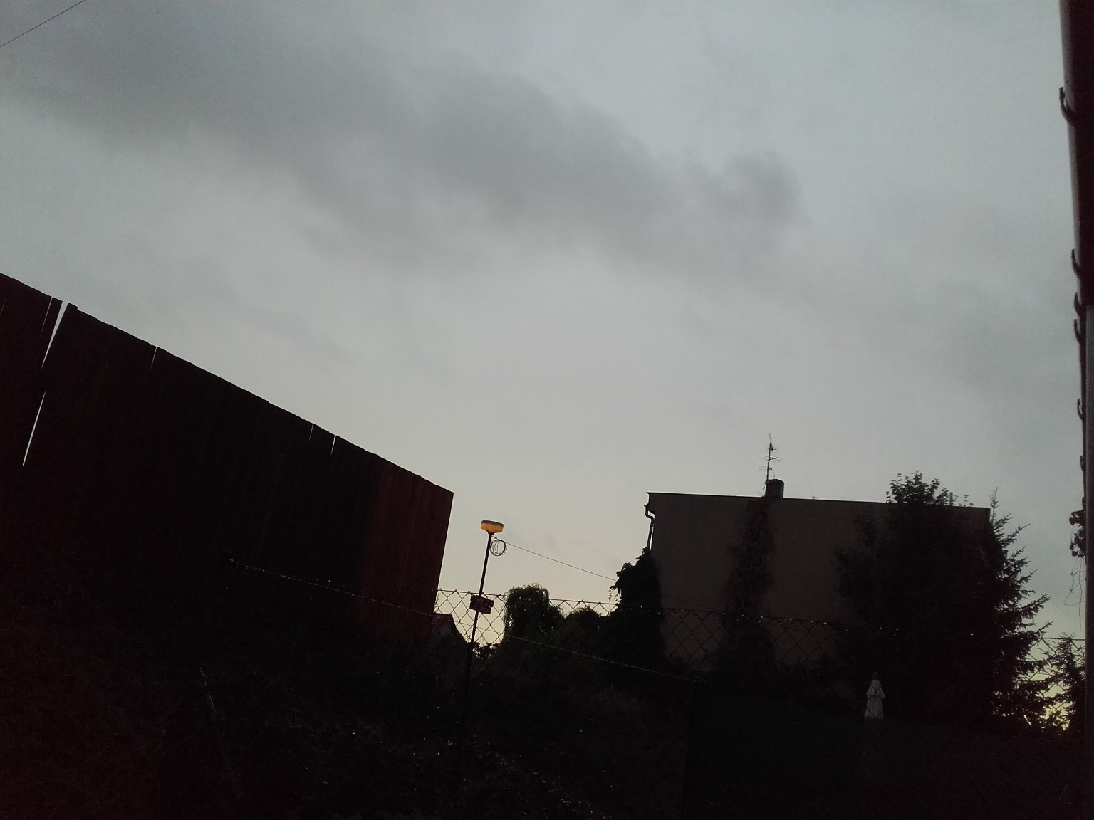 SV vítr 3 km/h, tlak 1018 hPa, vlhkost 96 %, duha po další bouřce