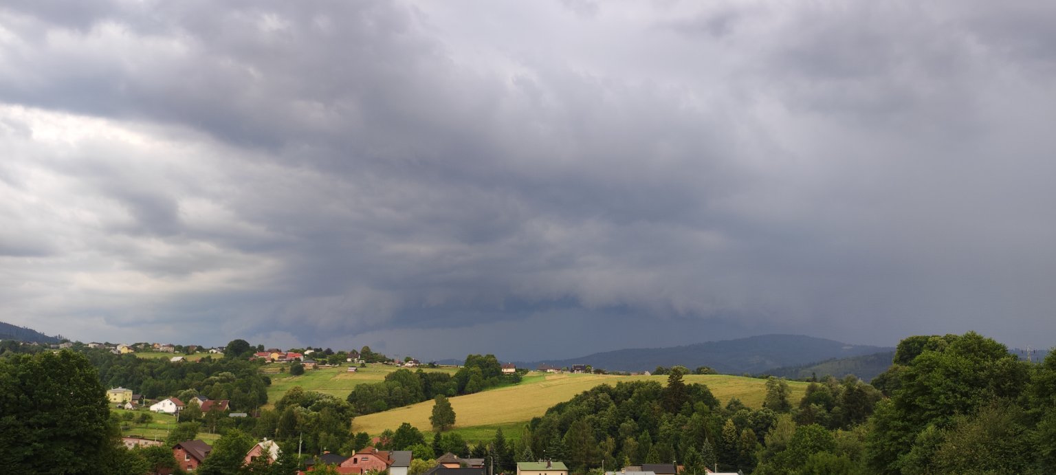 Zamračené, silná búrka, silný dážď, prechodne silno veterno.