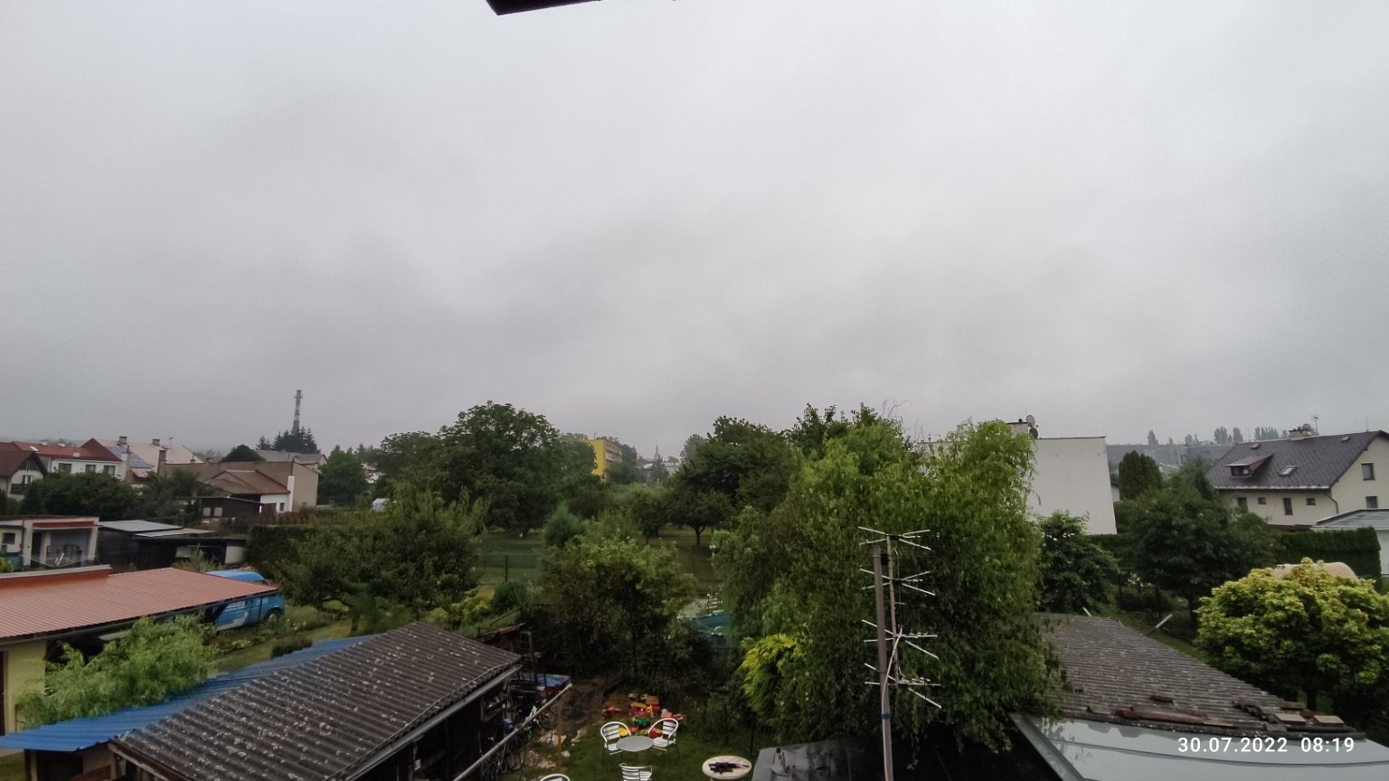Oblačnost 88,4%, tlak 1014,82hPa→, poc.teplota 19,78°C, tepl.ros.bodu 17,21°C, rel.vlhkost 93,4%, abs,vlhkost 14,63g/m3, JJZ vánek 192° 1,39m/s(1 Bft), včerejší průměrná teplota 21,54°C, délka dne 15:12:43.