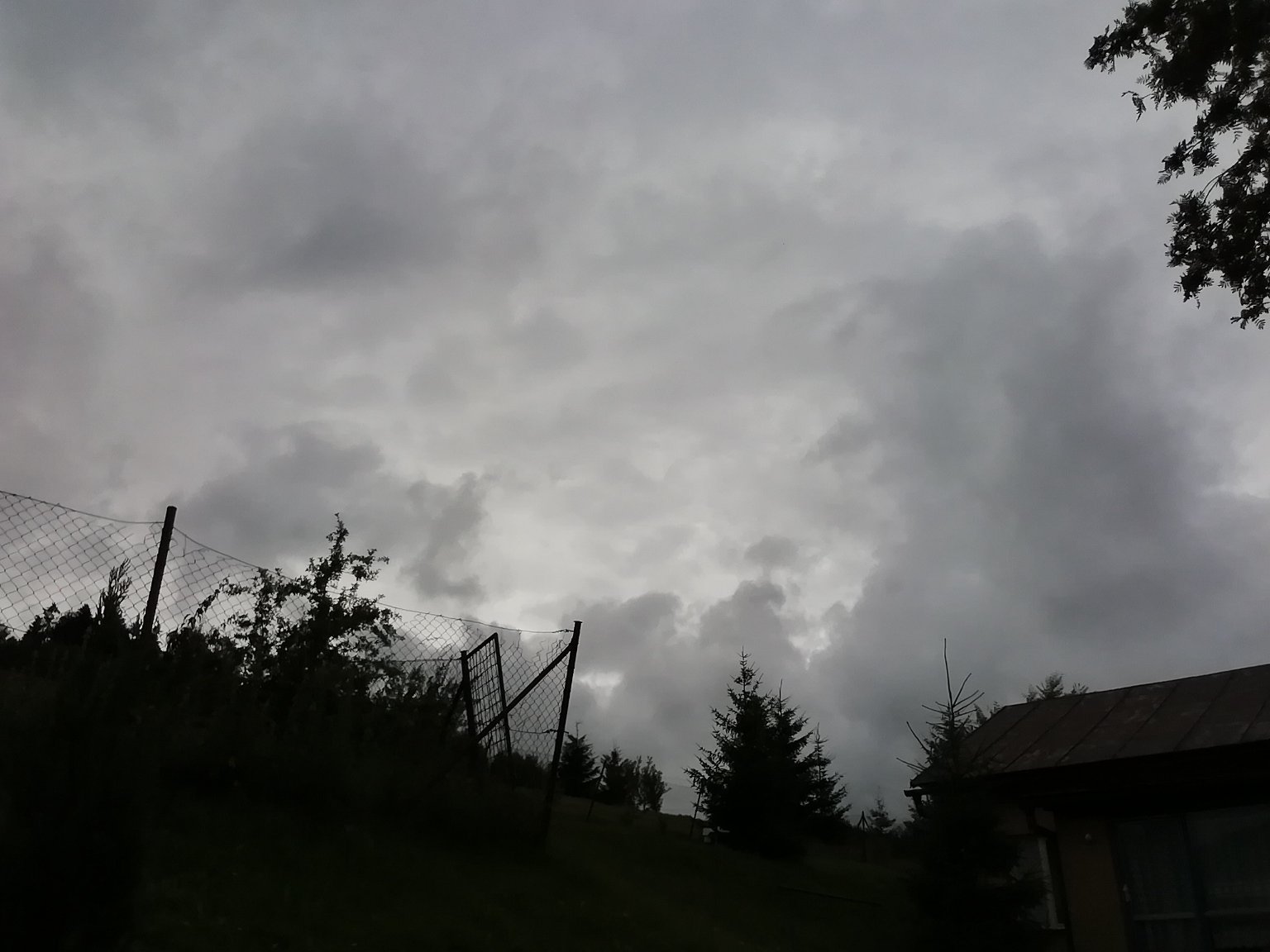 19,1°C, Velmi slabý déšť. Tmavy Stratus...