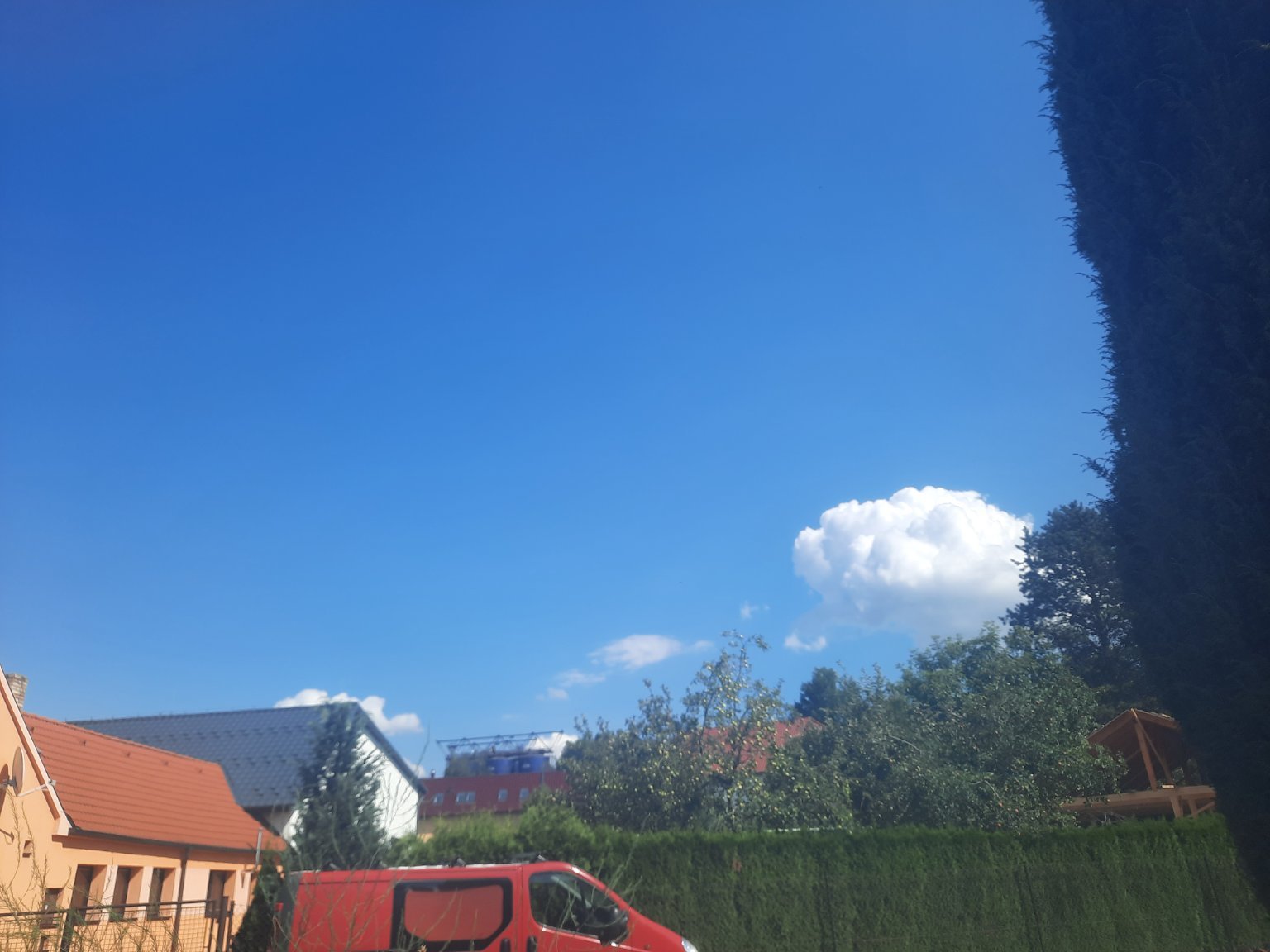 23,1°C, Oblačno. Opět nějaká hradba Cumulu, ale nespadla ani kapka. Prý má dneska být až 28°C... No to určitě! ?