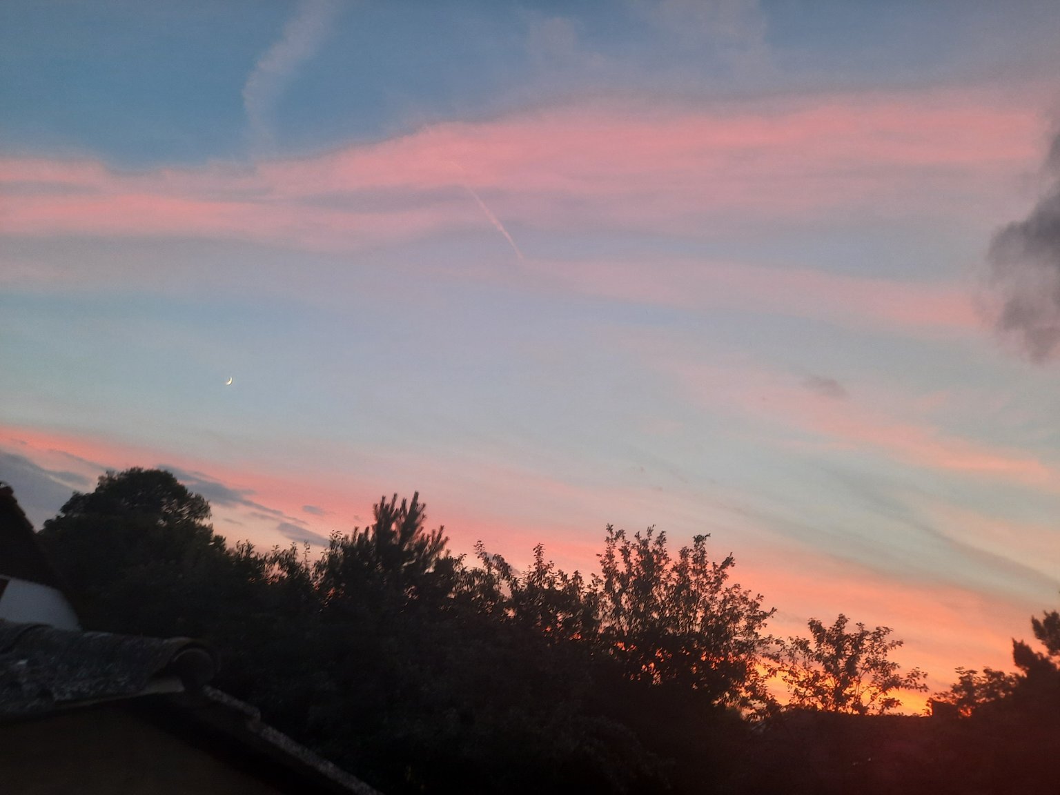 červánky a vlevo se ukázal dorůstající srpek Měsíce