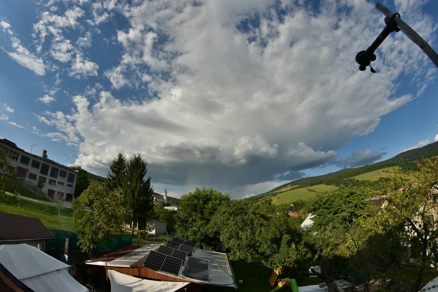 Na krajním východě Moravy se vyskytují přeháňky. Jejich oblačnost je viditelná i od nás. Vane čerstvý severovýchodní vítr, tlak: 1018hPa.