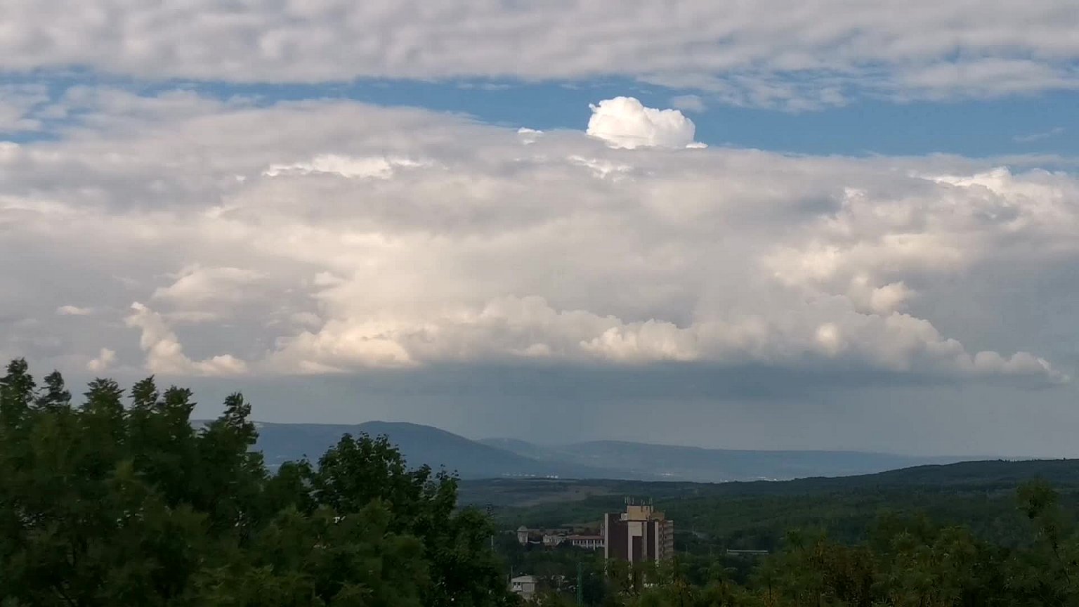 Dusno, tlak 1008,2 hPa, slabý SZ vítr nebo klid.
