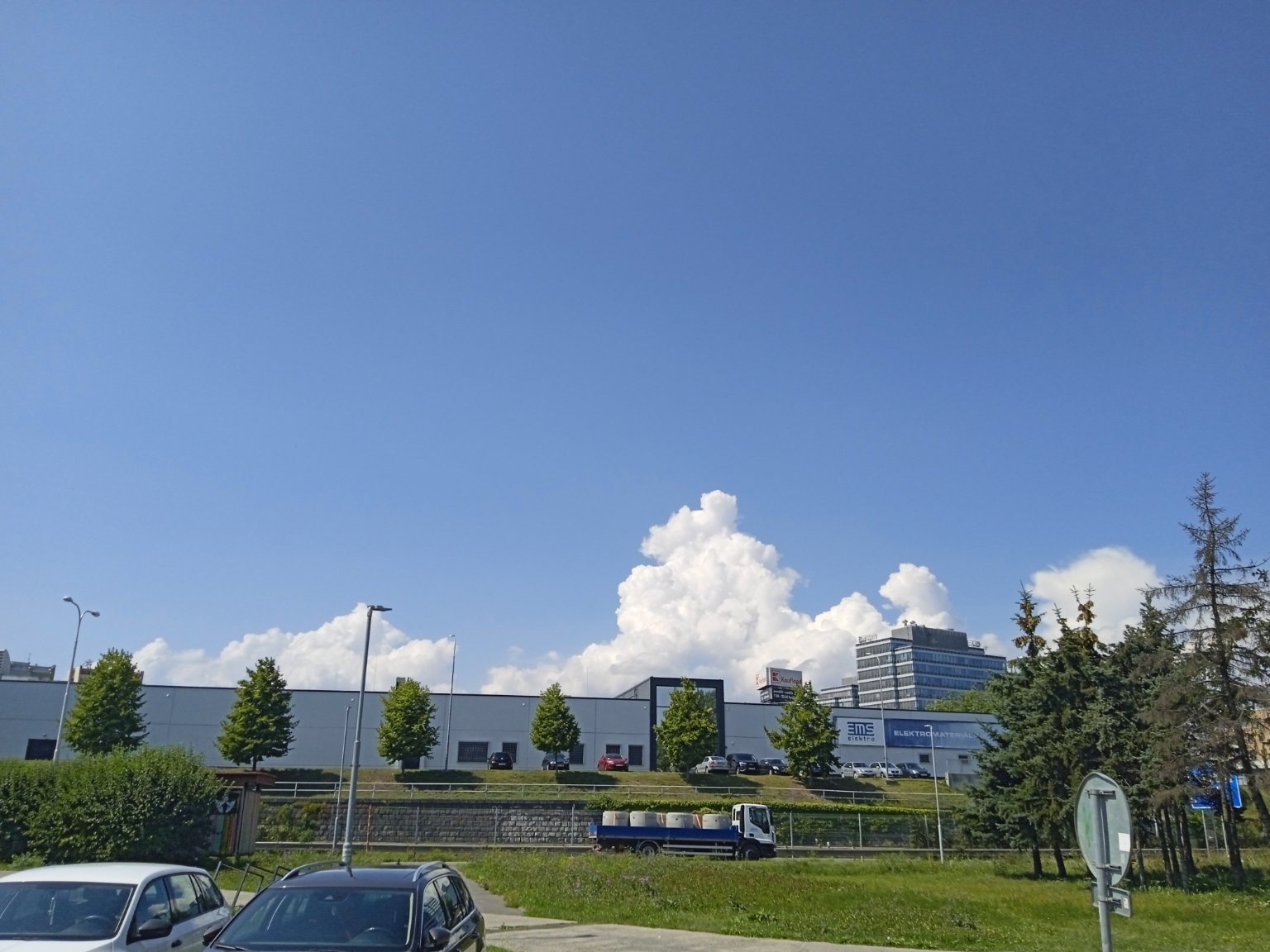 Aktuálně převažuje většinou oblačno a slabá dešťová přeháňka velké kapky a fouká většinou slabý vítr