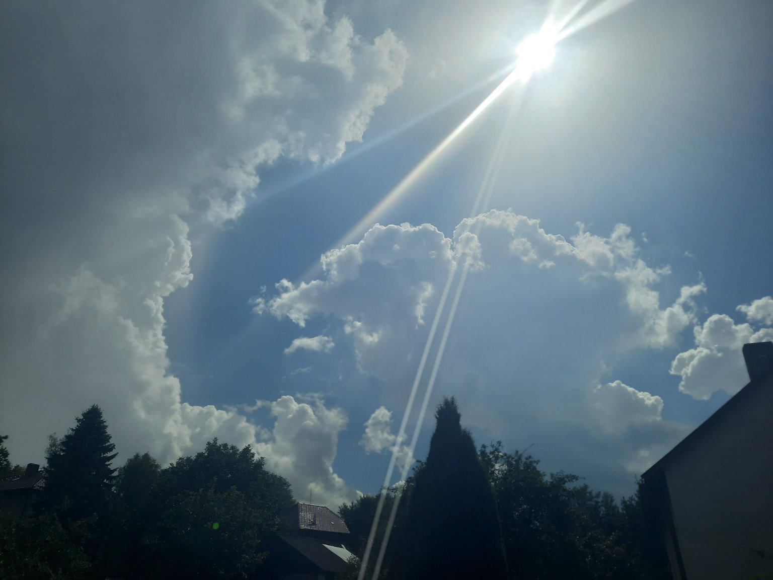 Kupovitá oblačnost, směrem na Neratovice přeháňka