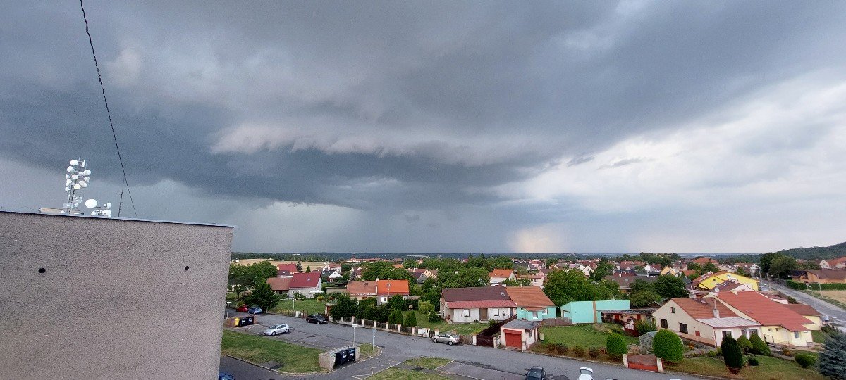 Z dálky je slyšet hřmění, tlak 1004,6 hPa, slabý proměnlivý vítr.