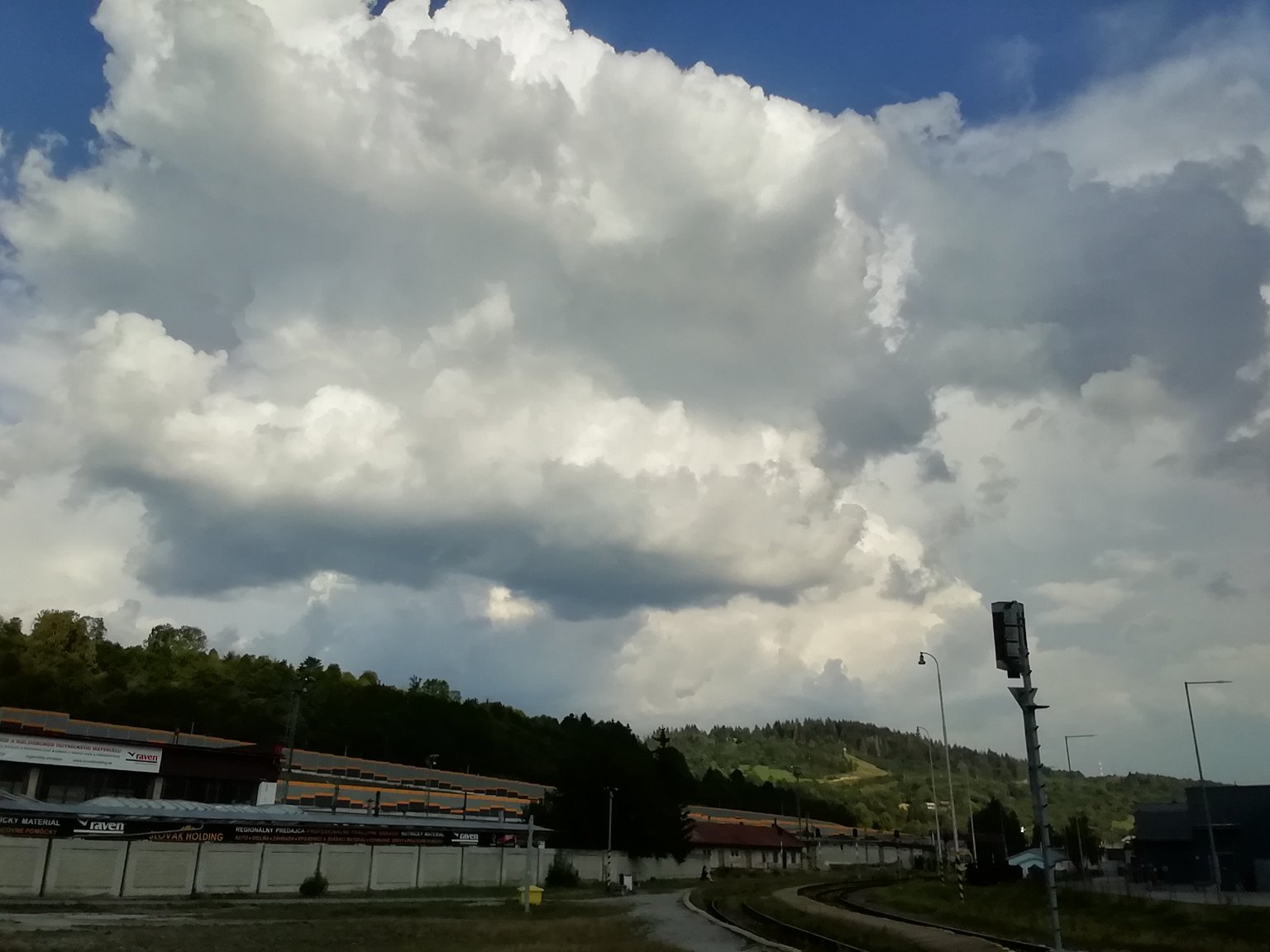 28,4°C, Polojasno. Tento Cumulonimbus tu je už od rána... A tady ani mráček...