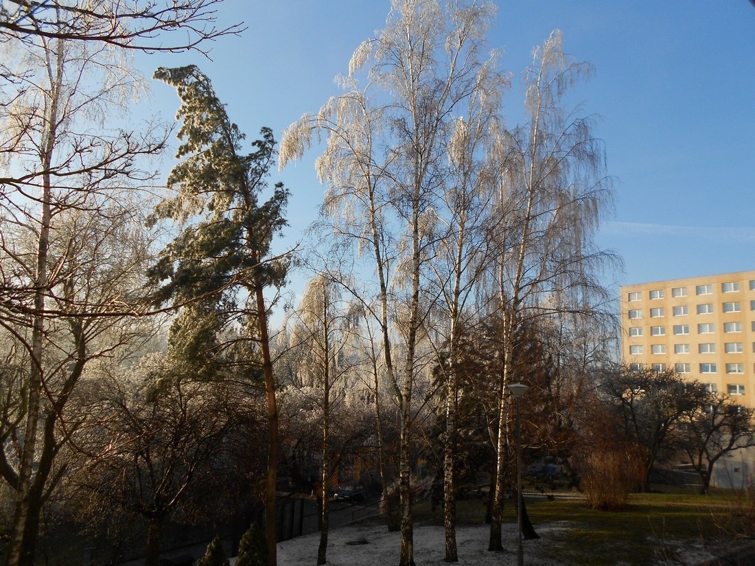 Ráno mlha,dopoledne se pak rozpadla a bylo skoro jasno až polojasno teď už zase oblačno. Námraza už téměř opadla drží se jen ve stínu. /Foto v 9:24h