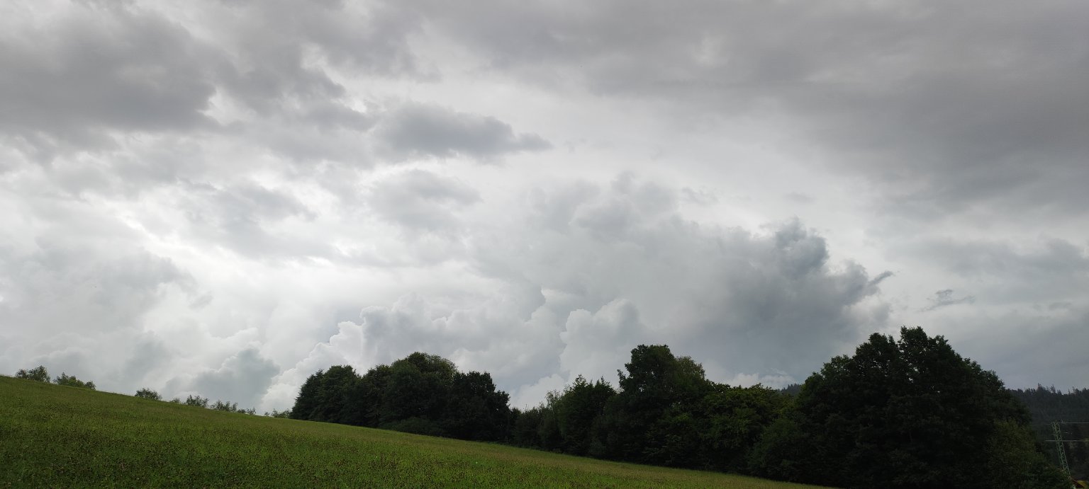Hodně oblačnosti, dusno, tlak 1011,7 hPa, SZ vítr do 3 m/s.