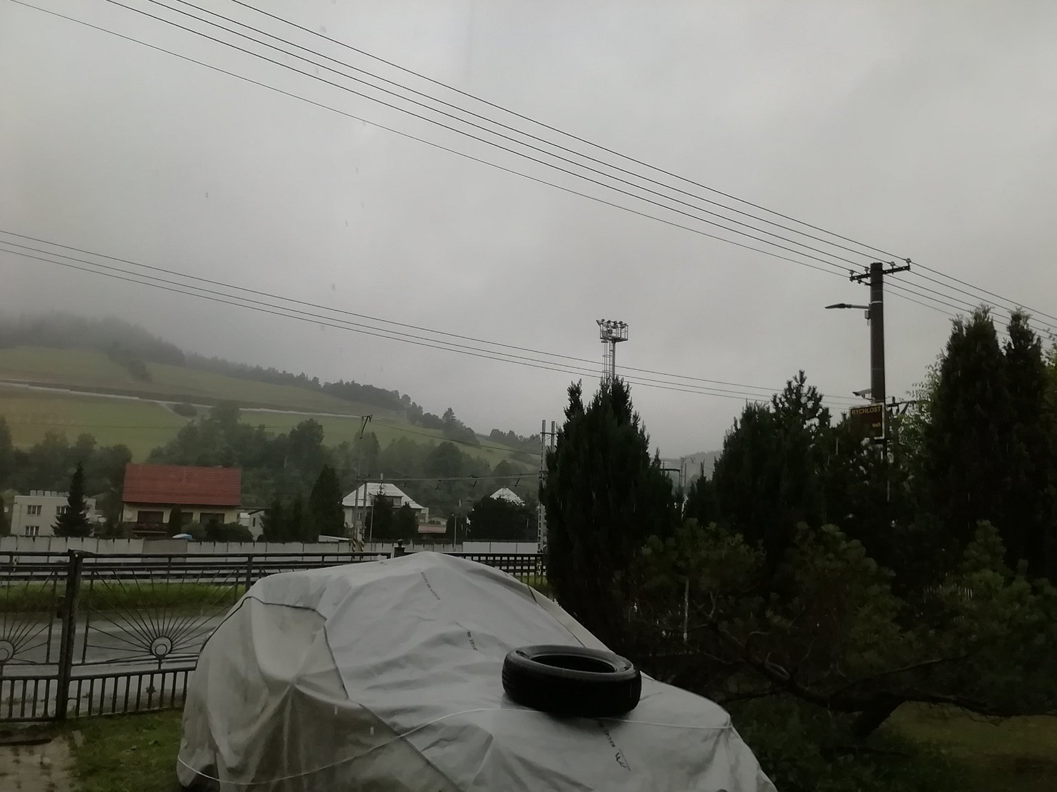 Místy slabě protrhaná oblaka.