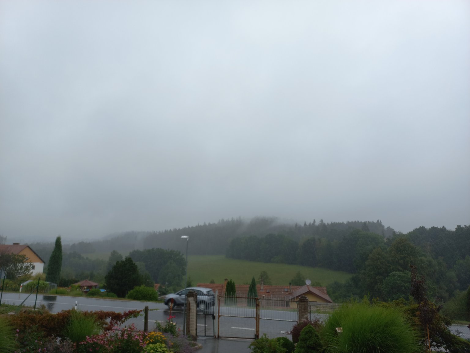 15,7°C, Slabé až velmi slabé mrholení. Opět začalo mrholit... Dohlednost rychle klesá. Bouřky už asi nebudou...