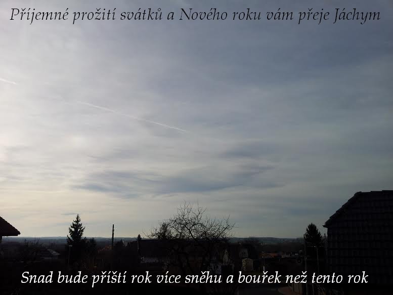 foto z 2013 12 24 v 11:03 zachycuje pohled na Markovice - chybí sníh - takhle to nyní vypadá nad hlavou - modrá obloha a mrky do bílých do černých