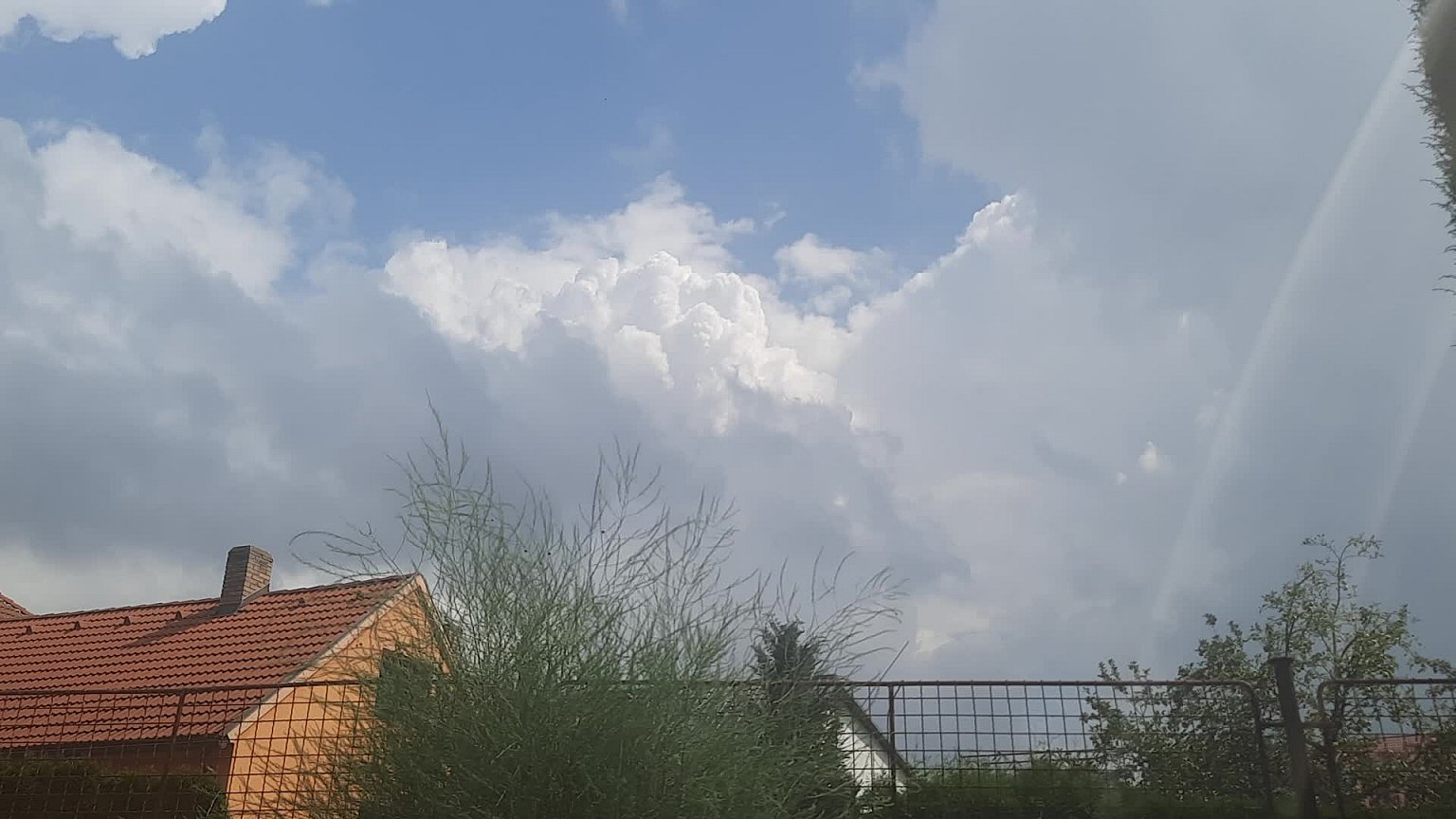 Aktuálně převažuje většinou skoro zataženo až oblačno a slabá dešťová přeháňka a fouká většinou slabý větřík