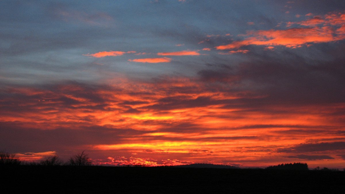 Klidno,tlak 997hPa,vlhkost 93%.Dnešní západ Slunce