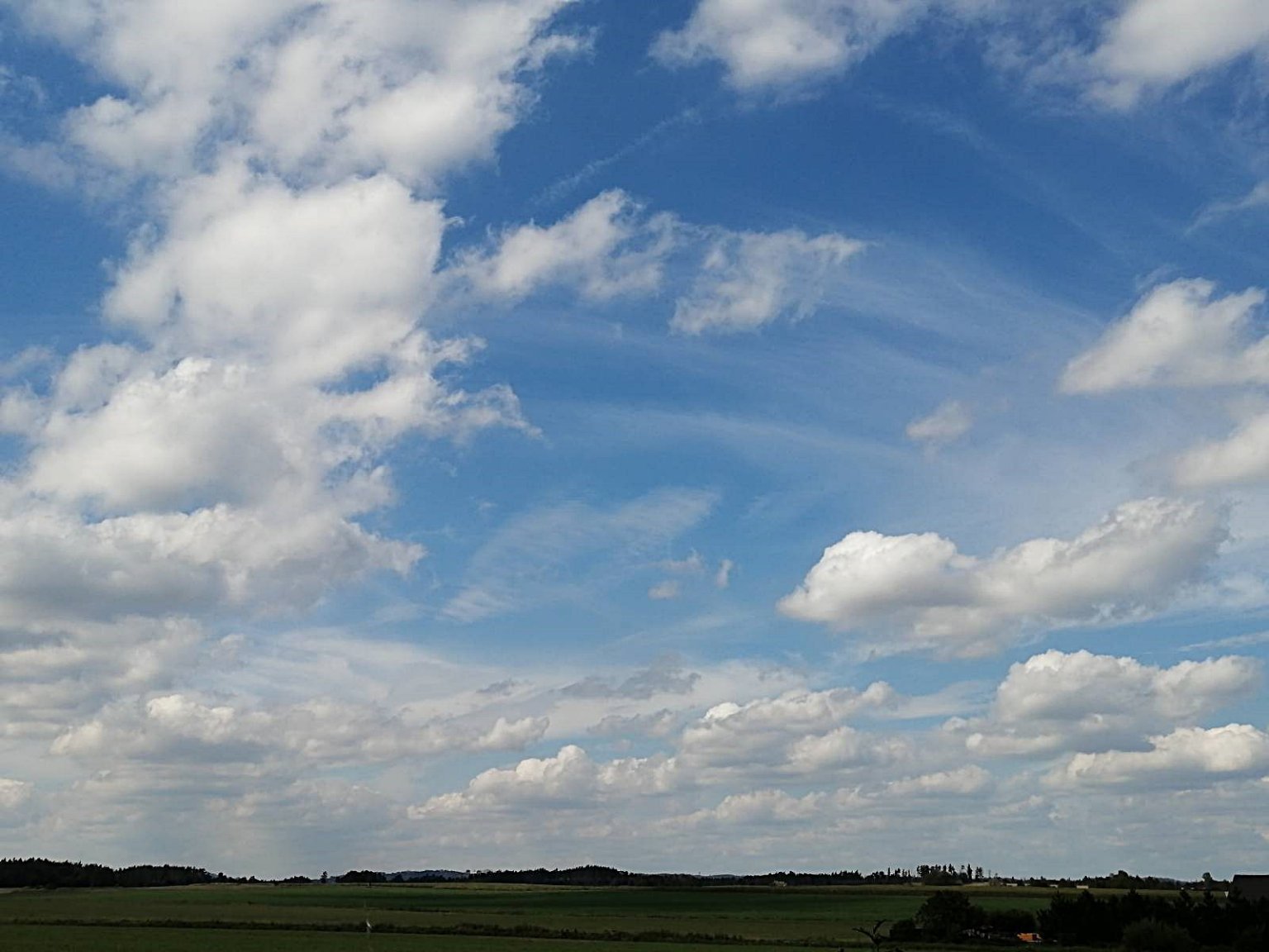 cumulus humilis a cirrovitá oblačnost, tepleji než včera, mírný vítr.