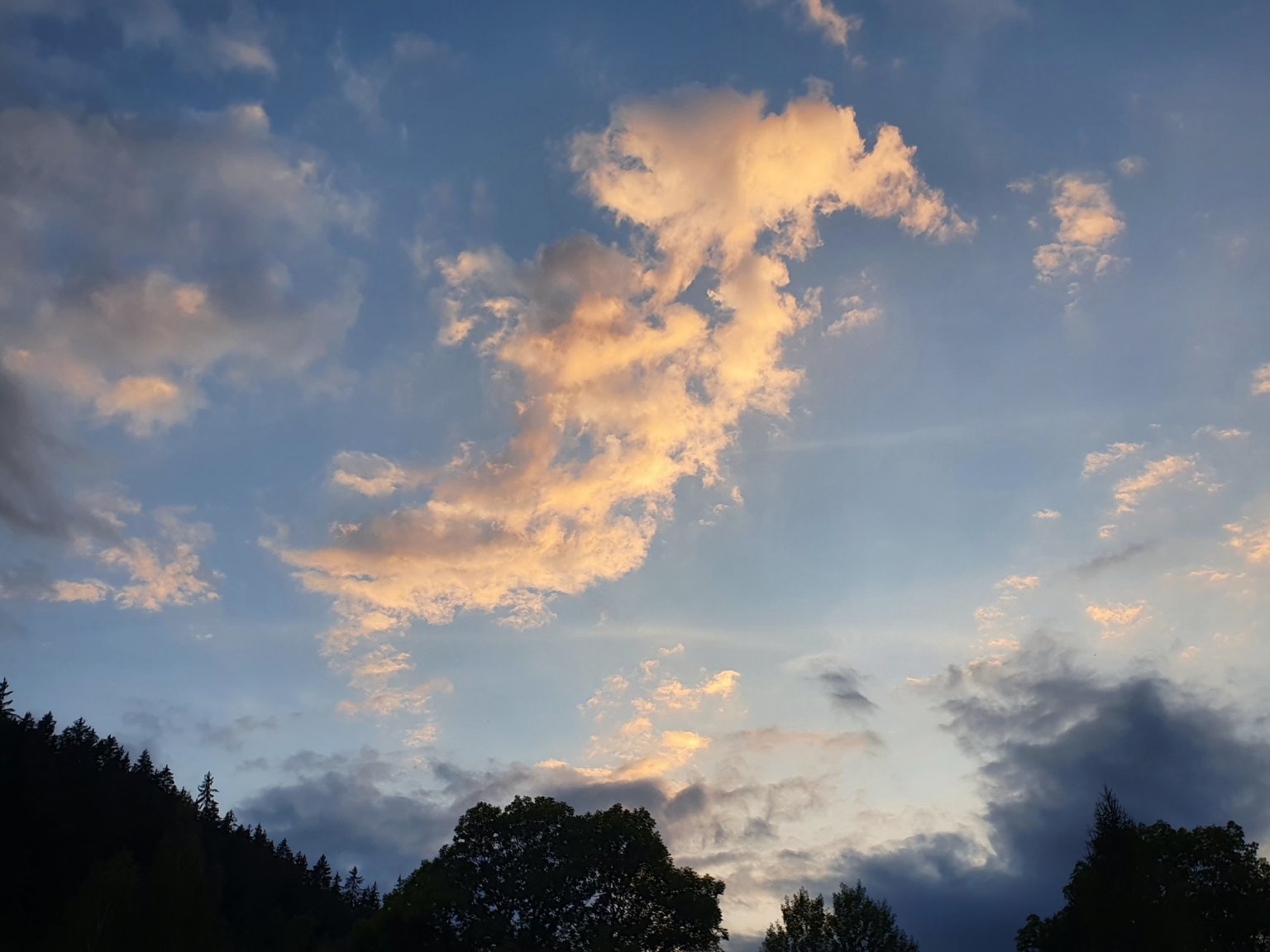 15,4°C, Zataženo až oblačno. Přeháňka v dálce, její odrazivost činí 12dBZ.