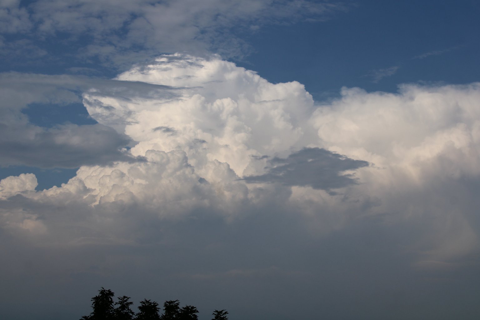 23,4°C, Polojasno. Krásny vývoj oblačnosti na skoro všech světových stranách.