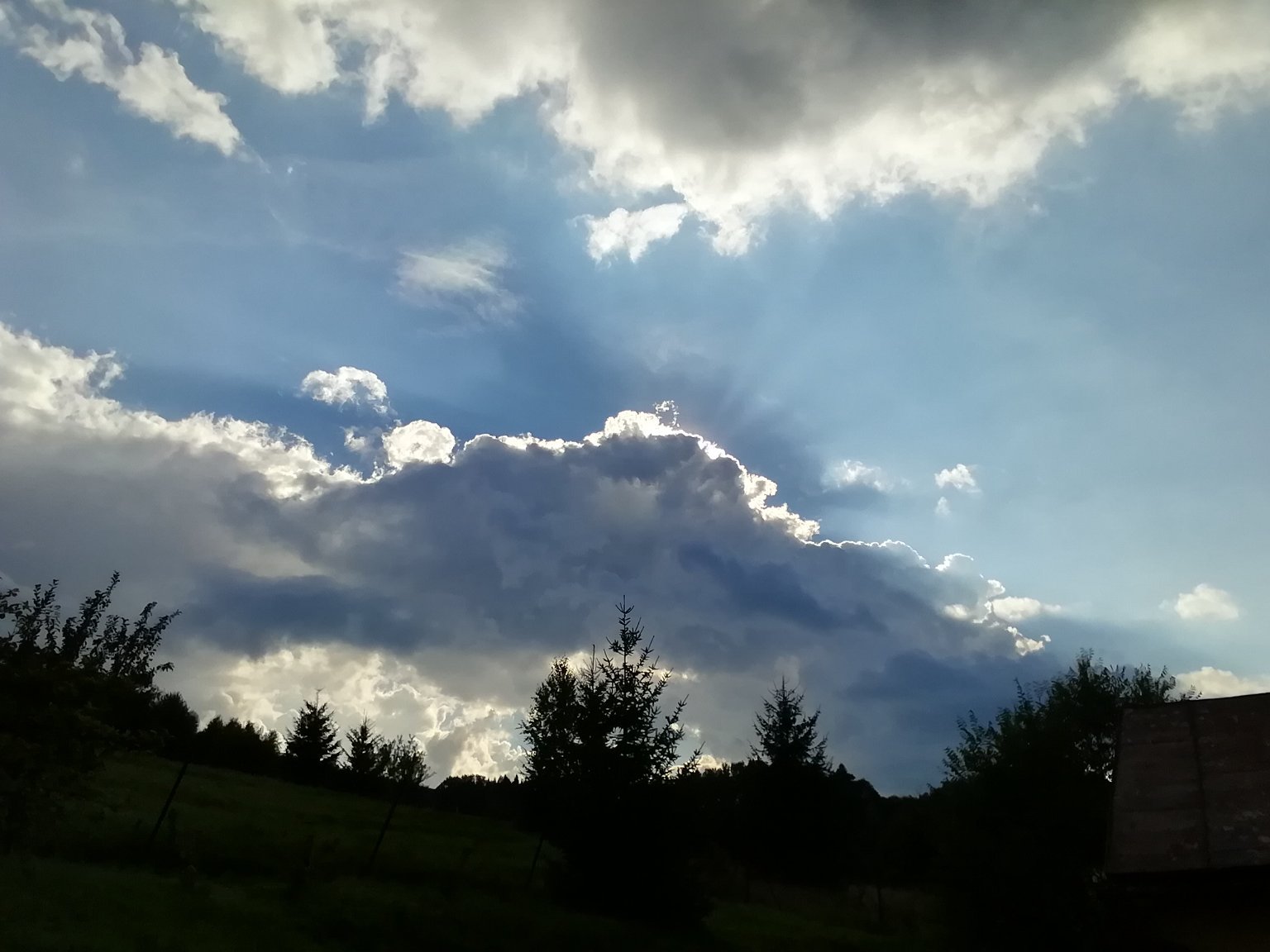 Padají velké kapky, to nejsilnější je pár kilometrů od nás :( Au teď uhodilo do země zvedá se vítr, něco se děje.