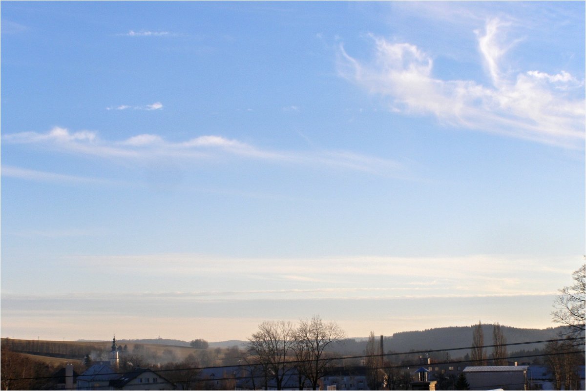 Nasouvá se k nám oblačnost, vítr 0.3 m/s - SZ, tlak 1027.6 hPa, vlhkost 75%, rosný bod 1.4°C a pocitová teplota je 5.5°C.