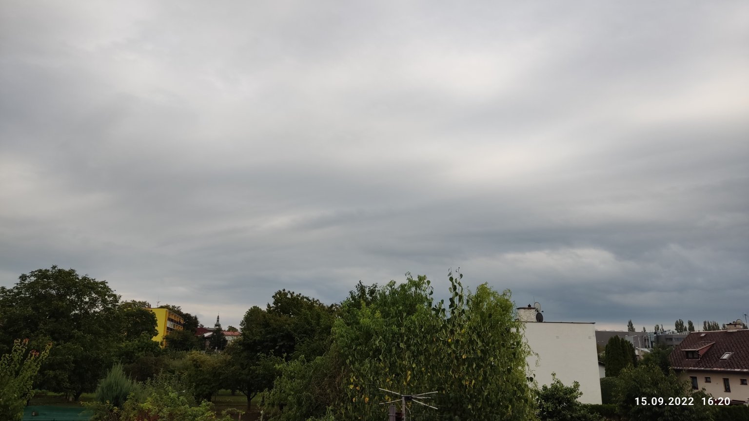 Vlhkost 65%, vánek. Zataženo střední a vysokou oblačností, ze severu se blíží nízká oblačnost.
