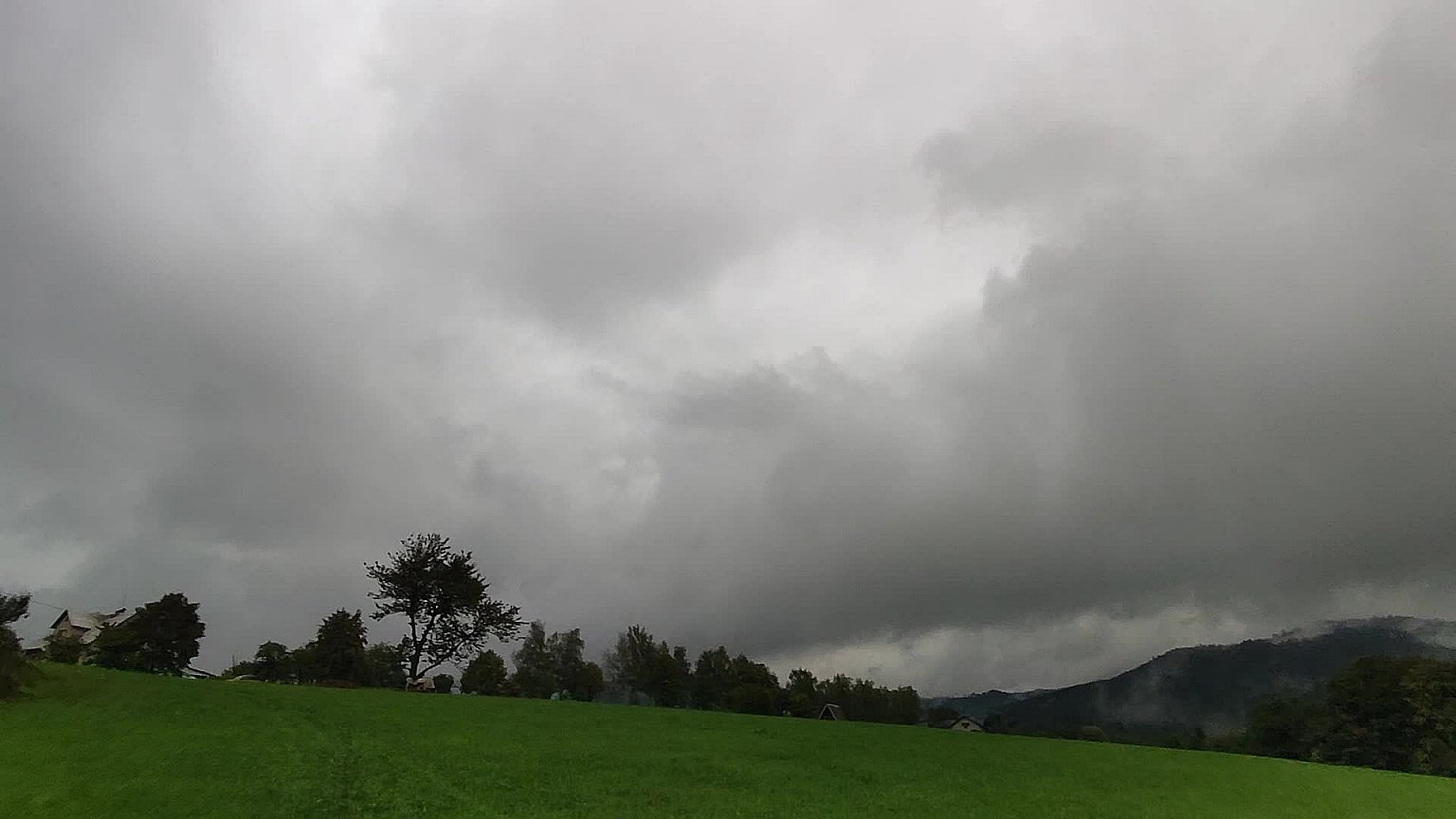 15°C, Zataženo až oblačno. Nízký Stratus a zvláštní oblačnost.