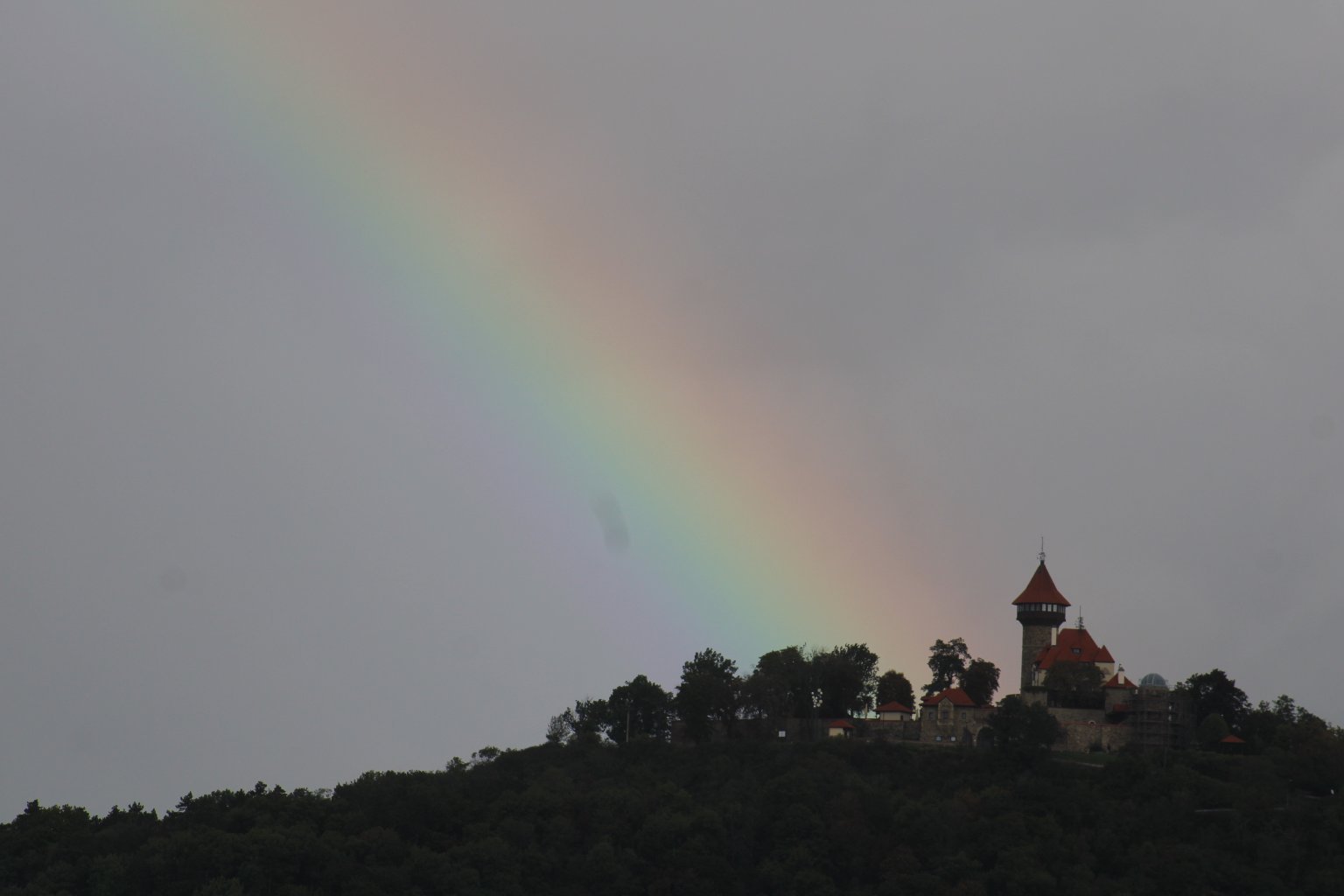 Duha přes hrad Hněvín ...paráda, to se jen tak nevidí;-)