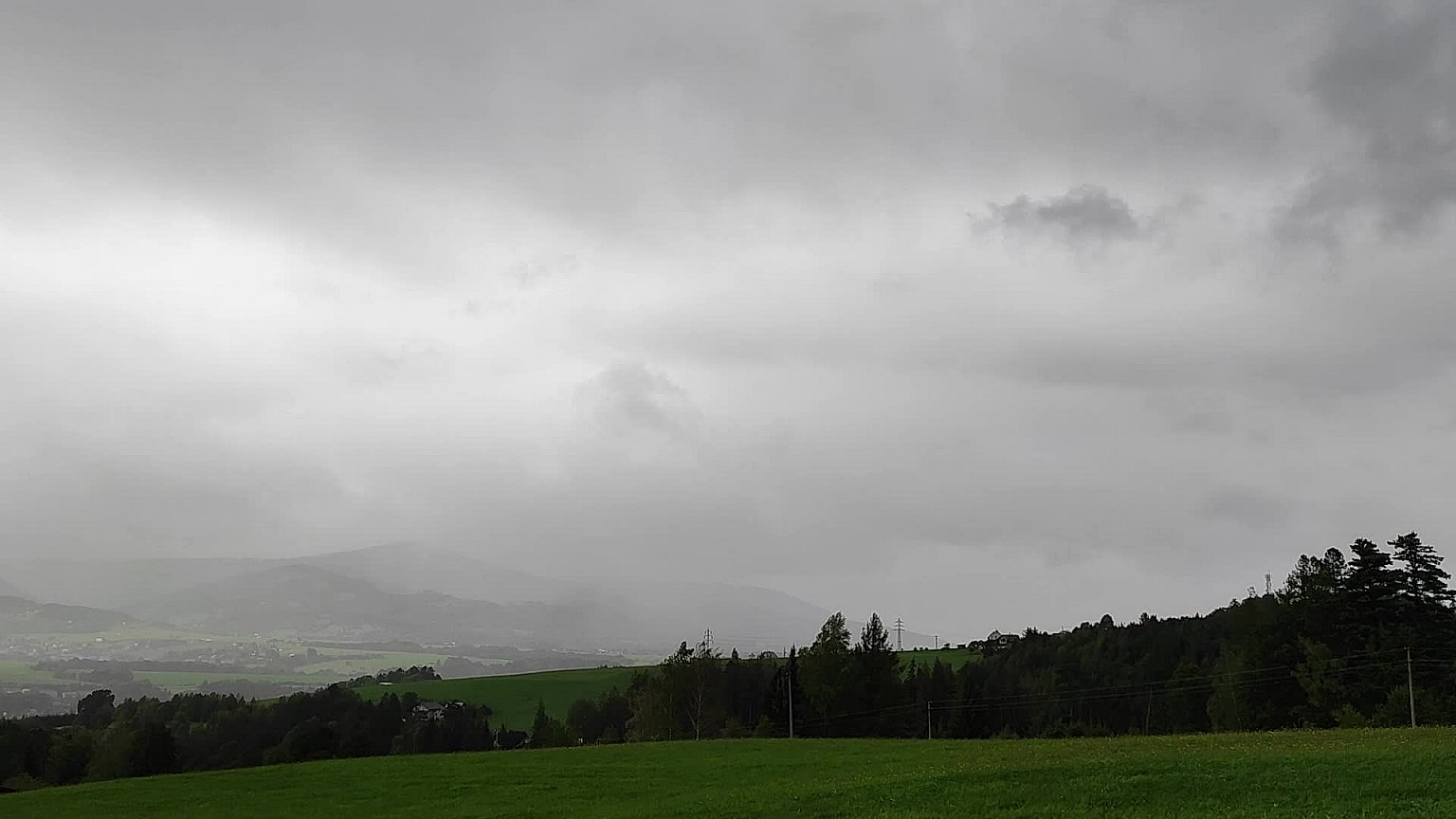 9,2°C, Zataženo až oblačno. Blíží se přeháňka, vítr zesiluje.