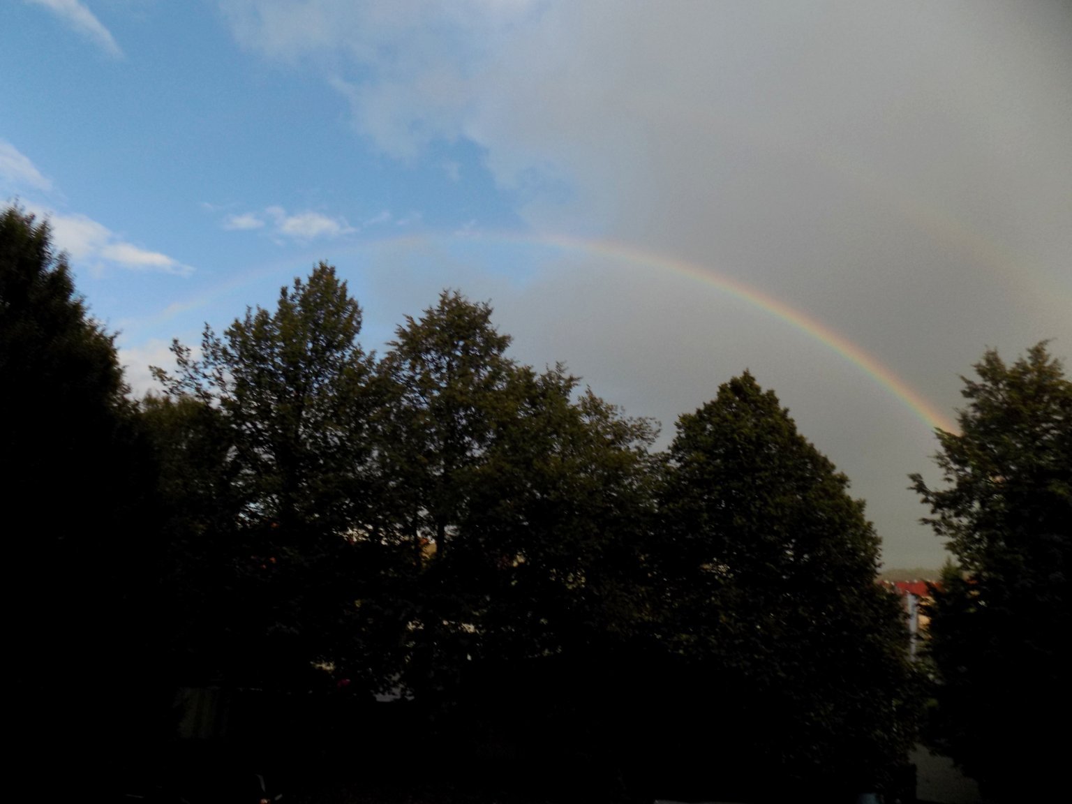 9°C, Velmi slaba až slabá dešťová přeháňka. Duha už mizí.