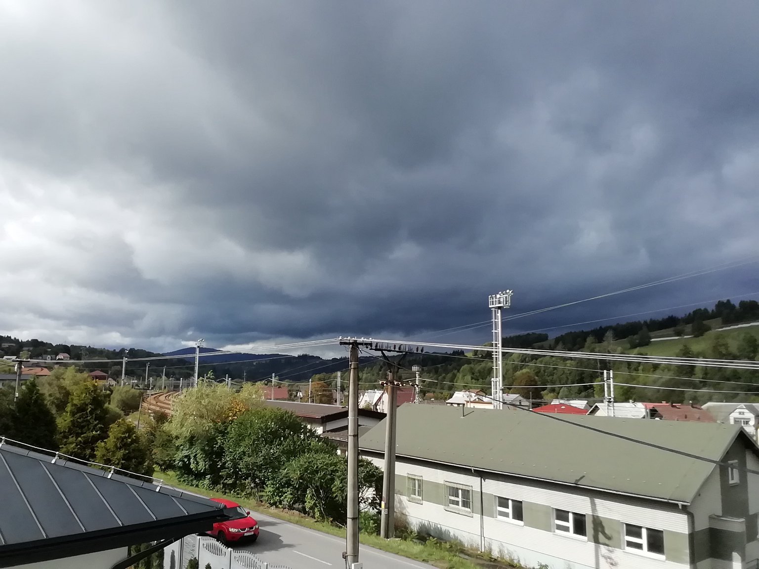 10°C, Mírná až slabá dešťová přeháňka. Tak krupky asi příště...