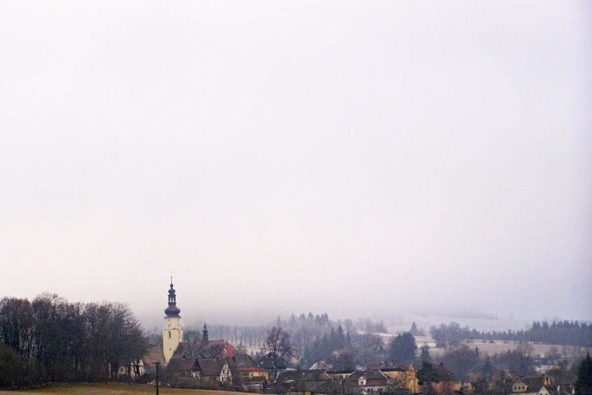 Mlhavo,klidno,tlak 1015hPa.Obloha před západem Slunce.
