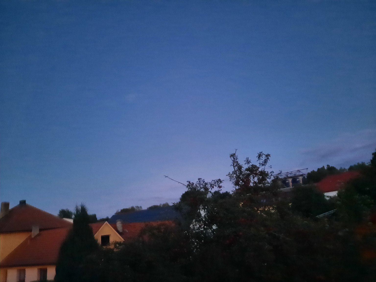 Skoro jasno 1/8, rozpad oblačnosti. Vítr 0,9 m/s SSV. Vlhkost 70%