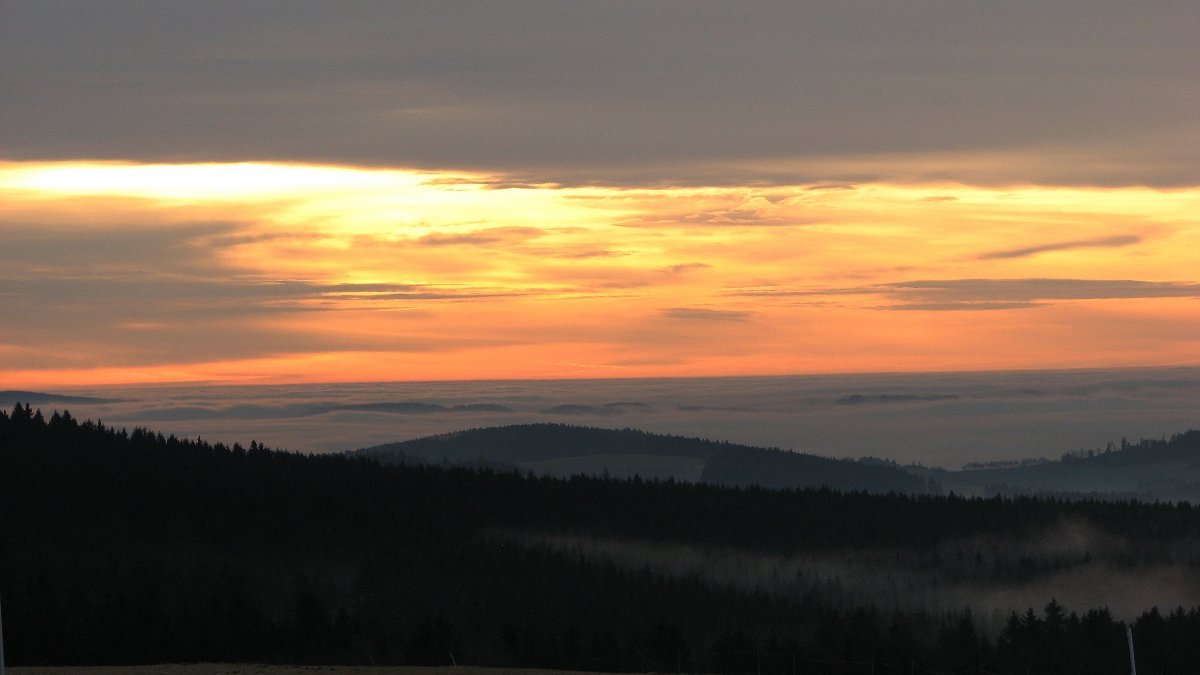 Slunko se chvílemi ukáže. Tlak: 1021 hPa, vlhkost: 99%, vítr J: 0,6 m/s.