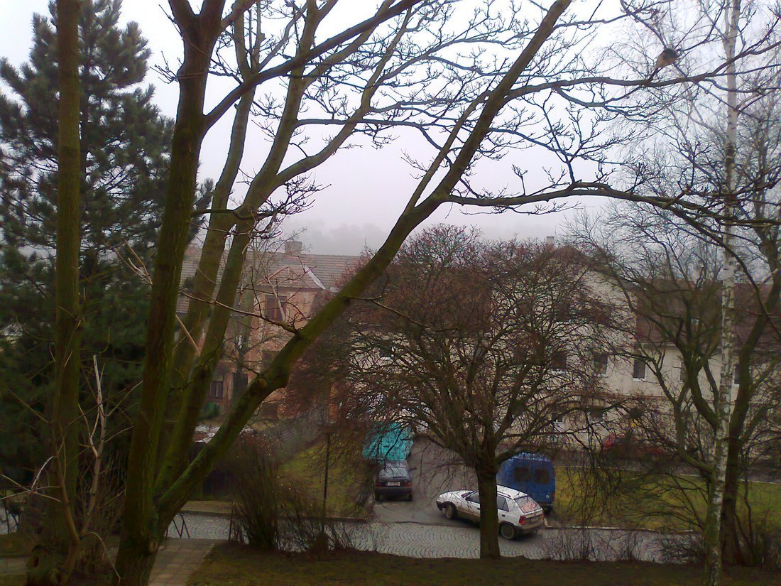 Klidno,tlak 1013hPa,vlhkost 95%.Obraz dnešního dne.