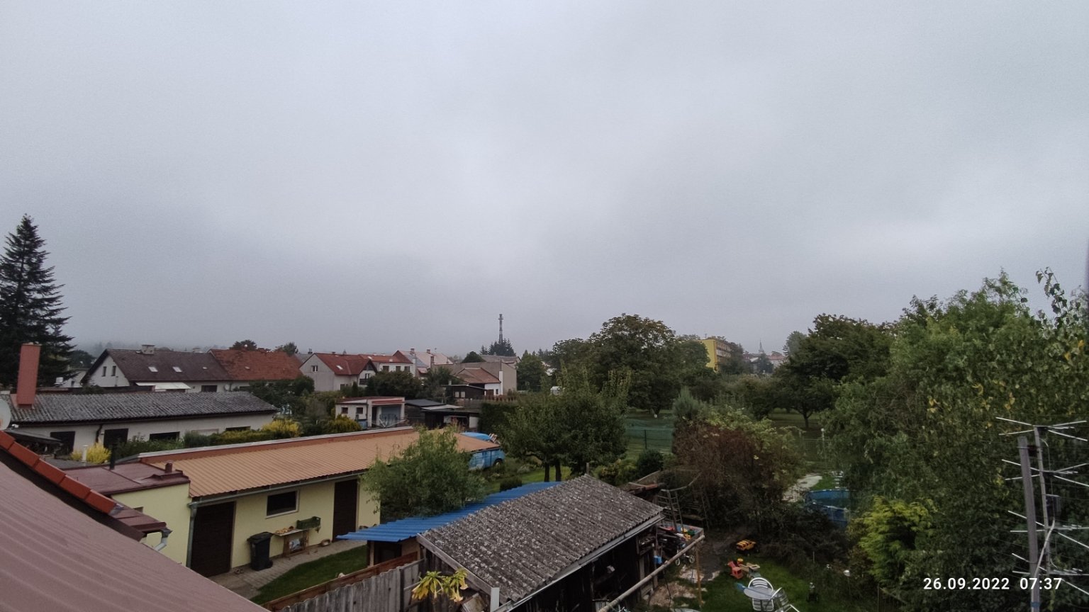 Prší(3,4mm/hod.), oblačnost 100%, tlak 1008,44hPa↓, poc.teplota 11,45°C, tepl.ros.bodu 11,08°C, rel.vlhkost 97,9%, abs.vlhkost 10,06g/m3, Z vánek 281° 0,33m/s(1 Bft), včerejší průměrná teplota 12,22°C, délka dne 11:57:44, sluneční záření 582W/m2