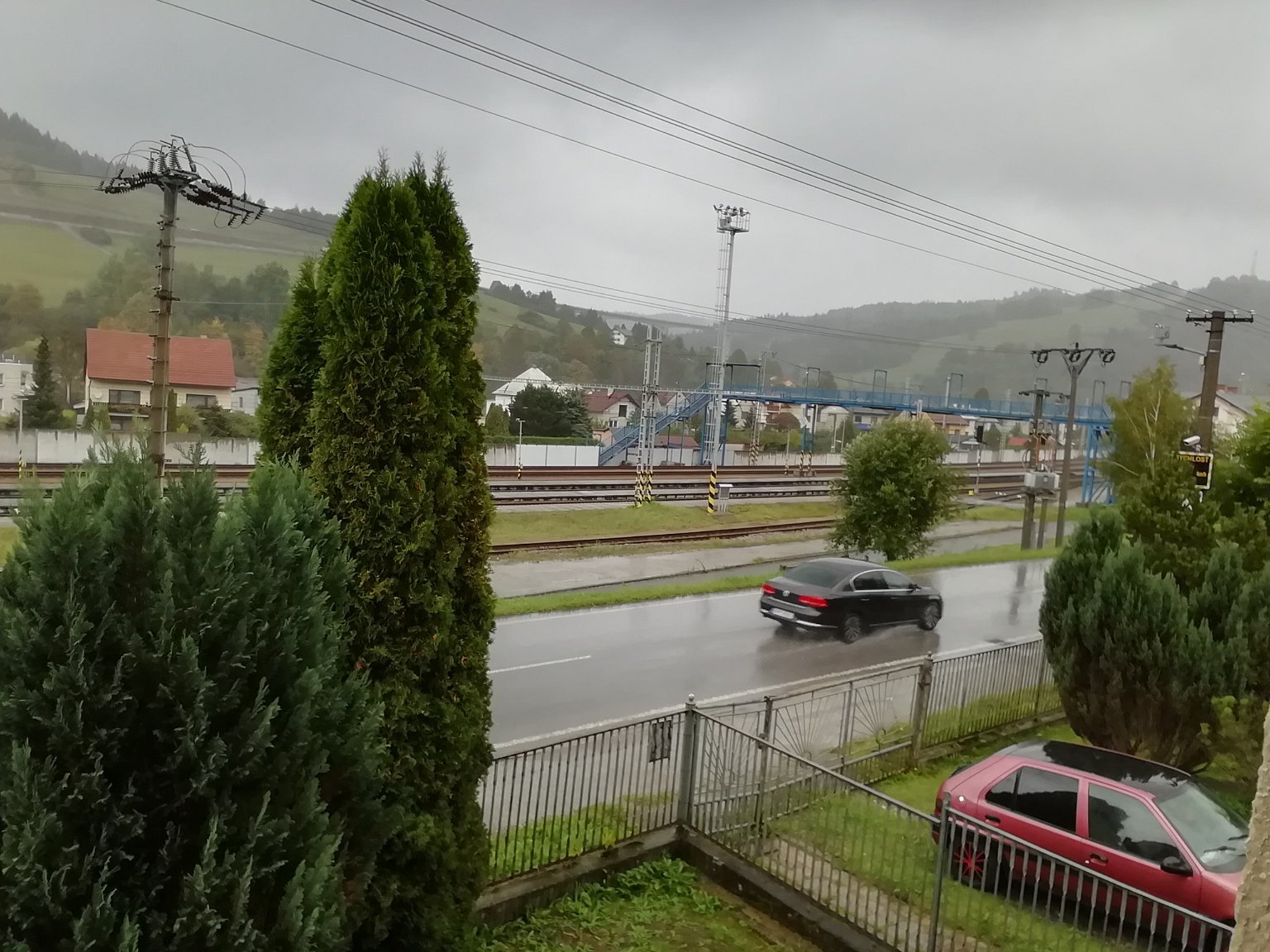 Aktuálně: Začíná pršet, silně fouká. Teplota: 14.4°C, Vlhkost: 60%, Tlak: 998 hPa.