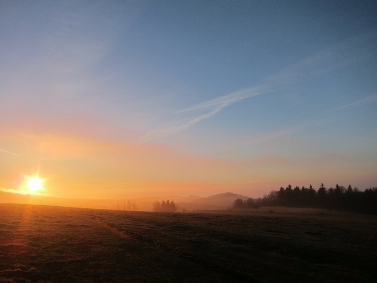 Zajímavý pohled na oblohu přes jezírko v Kamenném Malíkově, kde na vrbě sídlí vodníci.