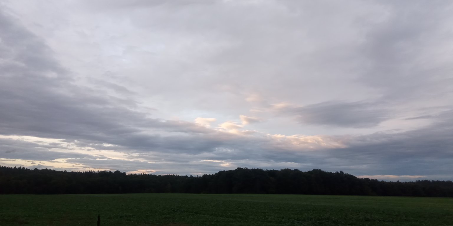 Po vydatné přeháňce hezká duha, tlak 1000 hPa, vlhkost 94%
